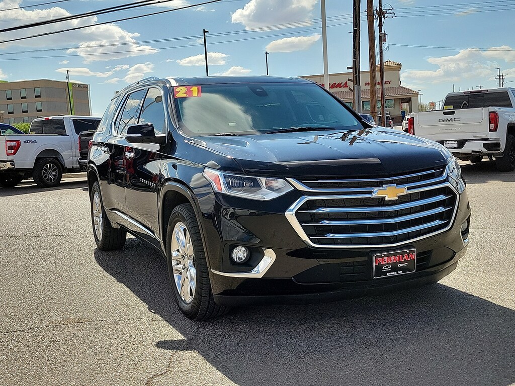 Every pre-owned vehicle at Permian GM earns its place on our lot. Our Certified Technicians perform a thorough inspection and any necessary service is completed before itâs available for purchase. If it doesnât meet our standards it doesnât make the cut. And for even greater peace of mind every qualifying vehicle is backed by our Lifetime Powertrain Warranty â" so you can drive with confidence long after you leave our dealership.2021 Chevrolet Traverse High CountryOdometer is 16763 miles below market average!AM/FM radio: SiriusXM with 360L Auto-dimming door mirrors Bose Premium 10-Speaker Audio System Feature Bumpers: body-color Front License Plate Bracket Mounting Package Heated door mirrors Power door mirrors Preferred Equipment Group 2LZ Premium audio system: Chevrolet MyLink Radio: Chevrolet Infotainment 3 Premium System Roof rack: rails only SiriusXM w/360L Spoiler Turn signal indicator mirrors.Awards: * 2021 IIHS Top Safety Pick with optional front crash prevention and specific headlights