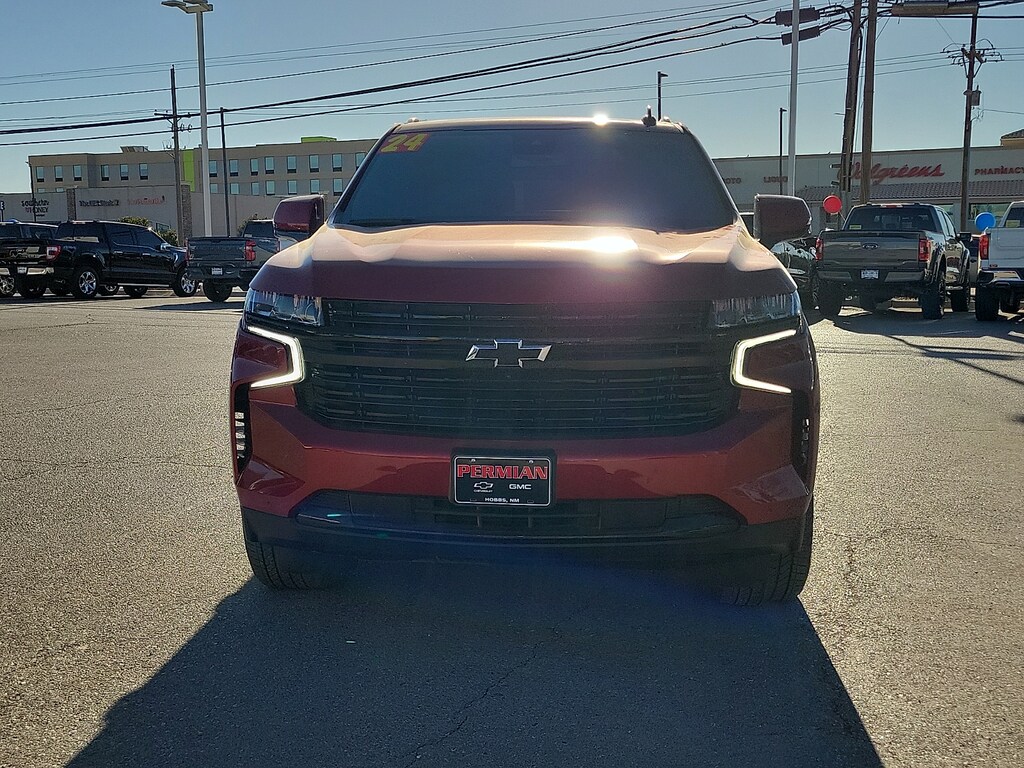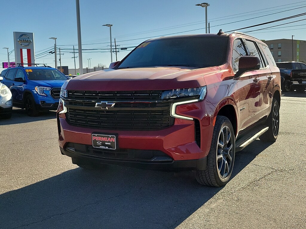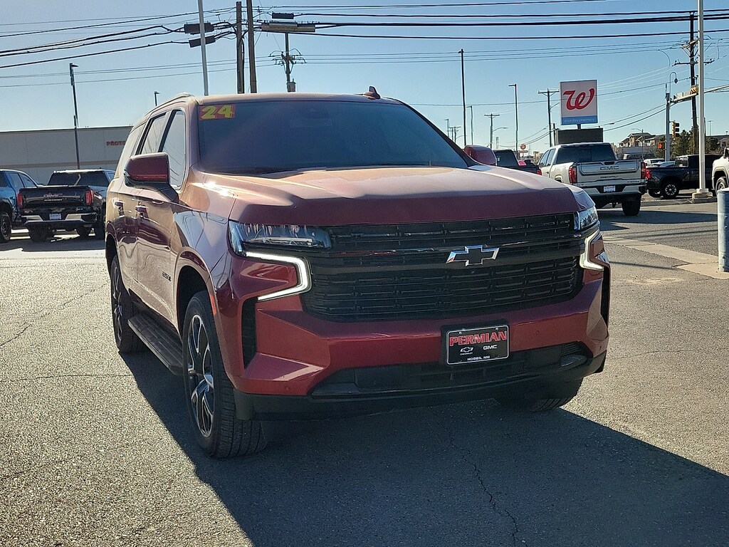 Every pre-owned vehicle at Permian GM earns its place on our lot. Our Certified Technicians perform a thorough inspection and any necessary service is completed before itâs available for purchase. If it doesnât meet our standards it doesnât make the cut. And for even greater peace of mind every qualifying vehicle is backed by our Lifetime Powertrain Warranty â" so you can drive with confidence long after you leave our dealership.2024 Chevrolet Tahoe RST4WD Jet Black/Victory Red Leather 1st & 2nd Row Color-Keyed Carpeted Floor Mats 2-Speed Active Electronic AutoTrac Transfer Case 2nd Row Pwr Release 60/40 Split-Folding Bench Seat 3rd Row 60/40 Power-Folding Split-Bench Seat 3rd Row All-Weather Floor Liners (LPO) Adaptive Cruise Control Advanced Trailering Package All-Weather Cargo Mat (LPO) All-Weather Floor Mats Auto-Dimming Inside Rear-View Mirror Bright Front & Rear Door Sill Plates Bumpers: body-color Color-Keyed Carpeting Floor Covering Diesel B20 Fuel Driver & Front Outboard Passenger Airbags Driver Alert Package Enhanced Automatic Emergency Braking Enhanced Driver Information Center Extra Capacity Cooling System Floor Console w/Storage Area Hands-Free Rear Power Programmable Liftgate HD Surround Vision Heated 2nd Row Outboard Seats Heated door mirrors Heated Steering Wheel Hitch View w/Pan/Zoom Image Adjustment Integrated Trailer Brake Controller Interior Protection Package (LPO) Lane Change Alert w/Side Blind Zone Alert LED Daytime Running Lamps License Plate Front Mounting Package Luxury Package Max Trailering Package Memory Settings Memory Settings for Driver Outside Heated Power-Adjustable Mirrors Power door mirrors Power Tilt & Telescopic Steering Column Preferred Equipment Group 1SP Rear Cross Traffic Alert Rear Pedestrian Alert Remote Start Roof rack: xxxxxx Smart Trailer Integration Indicator Spoiler Universal Home Remote Upper & Lower Active Aero Shutters Wireless Charging Wrapped Steering Wheel.