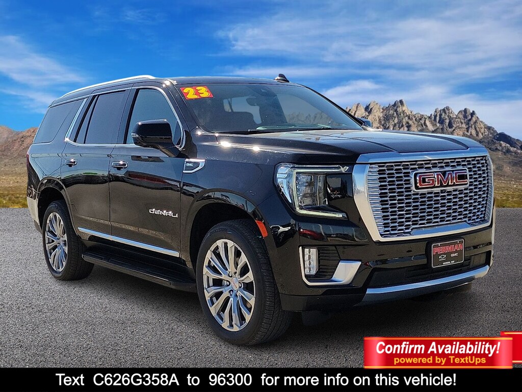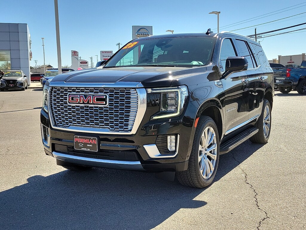 "Every pre-owned vehicle at Permian GM earns its place on our lot. Our Certified Technicians perform a thorough inspection and any necessary service is completed before itâs available for purchase. If it doesnât meet our standards it doesnât make the cut. And for even greater peace of mind every qualifying vehicle is backed by our Lifetime Powertrain Warranty â" so you can drive with confidence long after you leave our dealership.2024 GMC Yukon Denali4WD 12-Way Power Seat Adjusters 15""Diagonal Multi-Color Head-Up Display 2 Presets For Outside Rearview Mirrors 3rd Row 60/40 Power-Folding Split-Bench Seat Adaptive Cruise Control Advanced Security Package Advanced Technology Package Air Ride Adaptive Suspension Bose 14-Speaker Surround w/CenterPoint Bright Front & Rear Door Sill Plates Chrome Door Handles w/Body-Color Strip Dual Exhaust System Electronic Limited Slip Differential (eLSD) Enhanced Automatic Emergency Braking Enhanced Automatic Parking Assist Floor Console Galvano Bodyside Moldings Hands-Free Power Programmable Rear Liftgate HD Surround Vision Heated 2nd Row Outboard Position Seats Heated Driver & Front Passenger Seats Heated Steering Wheel Hill Descent Control Inside Rear-View Auto-Dimming Mirror Inside Rearview Auto-Dimming Rear Camera Mirror License Plate Front Mounting Package Max Trailering Package Navigation System Outside Heated Power-Adjustable Mirrors Perforated Heated & Ventilated Dr & Frt Pass Seats Power Release 2nd Row Bucket Seats Power Tilt & Telescopic Steering Column Preferred Equipment Group 5SA Premium Capability Package w/Active Response 4WD Rear Camera Mirror Washer Rear Pedestrian Alert Reverse Automatic Braking Safety Alert Seat Super Cruise Universal Home Remote Wireless Charging."