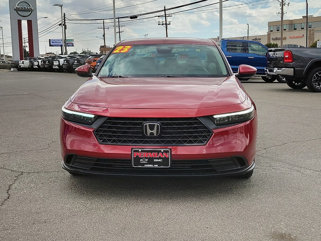 Every pre-owned vehicle at Permian GM earns its place on our lot. Our Certified Technicians perform a thorough inspection and any necessary service is completed before itâs available for purchase. If it doesnât meet our standards it doesnât make the cut. And for even greater peace of mind every qualifying vehicle is backed by our Lifetime Powertrain Warranty â" so you can drive with confidence long after you leave our dealership.2023 Honda Accord LXOdometer is 17128 miles below market average!Cloth 4 Speakers 4-Wheel Disc Brakes Air Conditioning AM/FM radio Apple CarPlay/Android Auto Automatic temperature control Bumpers: body-color Compass Driver door bin Dual front side impact airbags Four wheel independent suspension Front reading lights Knee airbag Low tire pressure warning Power door mirrors Radio data system Radio: 160-Watt AM/FM Audio System Rear window defroster Speed-sensing steering.